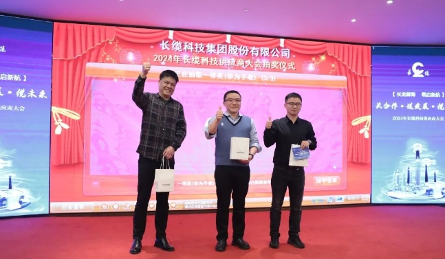 為答謝供應商伙伴對長纜科技的支持,大會共向8家“年度優秀供方”、4家“年度最佳服務供方”及3家“年度進步供方”單位頒發獎牌。隨后,獲獎供應商代表分別發言,分享了與長纜合作的經歷經驗和成果,并表示將繼續發力,積極探索新技術,與長纜共贏發展。