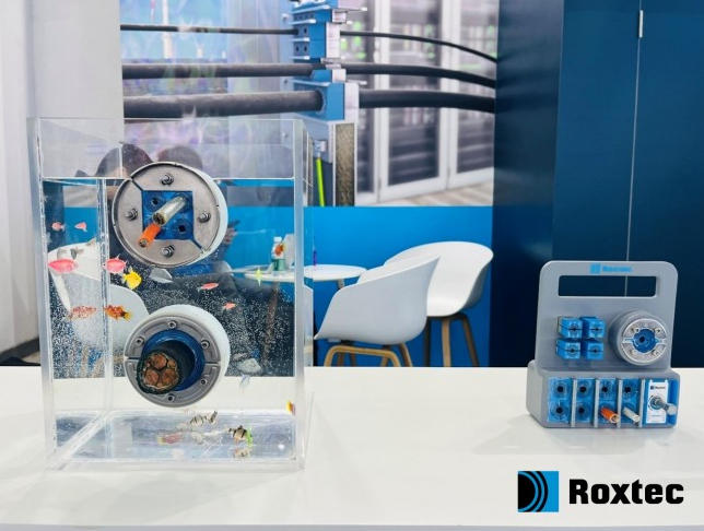 核心技術贏得廣泛關注展會現場,Roxtec展位以“深遠海風電密封需求”為核心,搭建了聚焦技術落地的展示場景,其獨創的Multidiameter™(多徑)技術仍是全場關注的焦點。Roxtec工程師通過現場演示,清晰呈現該技術如何通過六種基本規格模塊、“剝離芯層即可適配不同尺寸電纜與管道” 的核心優勢——從單根線纜穿隔到不同規格的電纜和管道同框密封,大幅簡化設計與運維流程。