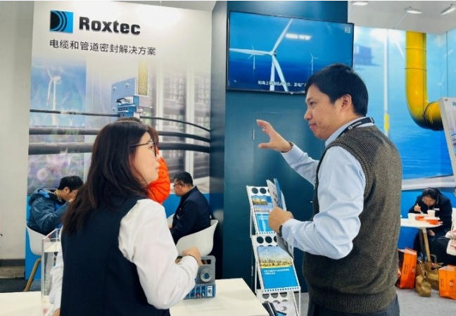 共同推進行業可持續發展為期三天的展會中,Roxtec接待了來自全球各地的專業觀眾,并與來訪嘉賓圍繞 “密封系統如何提升設備壽命”、“如何降低運維成本” 等核心議題,開展了多場深度交流。很多嘉賓在深入了解技術方案和應用案例后,對Roxtec密封系統為風電工程帶來的價值提升給予高度認可。