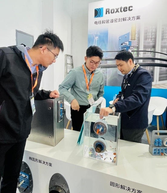 大批風電設備制造商、開發商及技術專家蒞臨參觀。國內某風電整機廠技術專家表示:“以往項目中,不同規格管線要匹配不同密封件,選型、庫存管理都很繁瑣,Roxtec多徑技術直接解決了這個痛點,對提升安裝效率很有幫助。”
