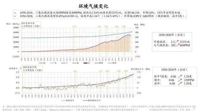 另外一個(gè)是環(huán)境的挑戰(zhàn)。環(huán)境和氣候的變化,這里有一個(gè)歷史的觀測(cè)記錄,從1850年開(kāi)始到現(xiàn)在,170多年,看到全世界的碳排放不斷在增加,從最初的每年2.2億噸碳排放到現(xiàn)在的323億噸,所以對(duì)環(huán)境產(chǎn)生很大的壓力。同時(shí)也可以看到,同時(shí)期觀測(cè)到的地球二氧化碳的含量也是不斷在攀升,從原來(lái)的285PPM到現(xiàn)在的409PPM。下面這張圖可以看出,隨著碳濃度的增加,相應(yīng)的全世界的平均氣溫也在增加,幾乎跟大氣碳濃度水平是同步的,這樣的氣候產(chǎn)生的嚴(yán)重結(jié)果就是天氣災(zāi)害頻發(fā),這是環(huán)境的挑戰(zhàn)。