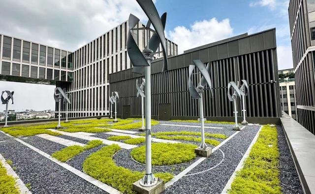 浙能源力科創中心大廈智慧綜合能源供應系統中的風力發電設備。 趙申軼攝