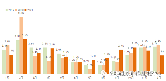 2021年全國棄光率逐月變化情況