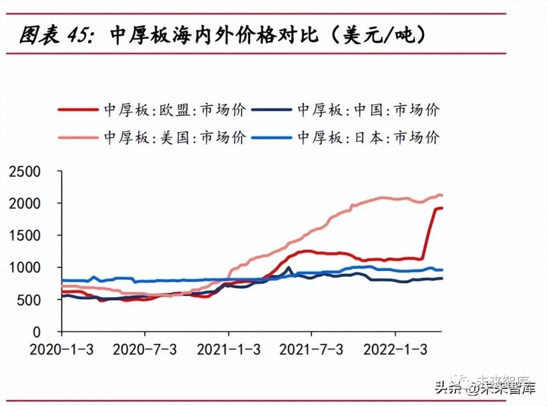 樁基無反傾銷稅限制,歐洲企業競爭力有限。現階段樁基無反傾銷稅限制,參考 塔筒反傾銷稅的調查周期(約 10 年),未來 10 年有望成為樁基環節的出口黃金期。競爭對手方面,歐洲本土供應商的產能落后,歐洲本土樁基供應商產能有限,SIF、 EEW等四家主流供應商的年設計產能之和不足 600 根,且50%的產品直徑小于11米, 在歐洲風機大型化趨勢下,已難滿足大噸重以及大直徑的產品要求。塔筒出口受反傾銷稅影響。較低的反傾銷稅率能使國內塔筒企業在海外市場中擁 有更強的議價能力。現階段,大金重工在歐盟地區的反傾銷稅最低為 7.2%,泰勝風能 在澳洲地區的反傾銷稅為零,出口優勢明顯。原材料價低造就競爭力。原材料價格方面,塔筒原材料主要有中厚板、法蘭等, 中厚板占原材料成本的占在 80%以上, 2022 年俄烏沖突,歐洲中厚板價格一度是我 國中厚板價格的兩倍,我國中厚板市場價長期低于國際市場,促使我國塔筒企業利潤 率高于海外企業。