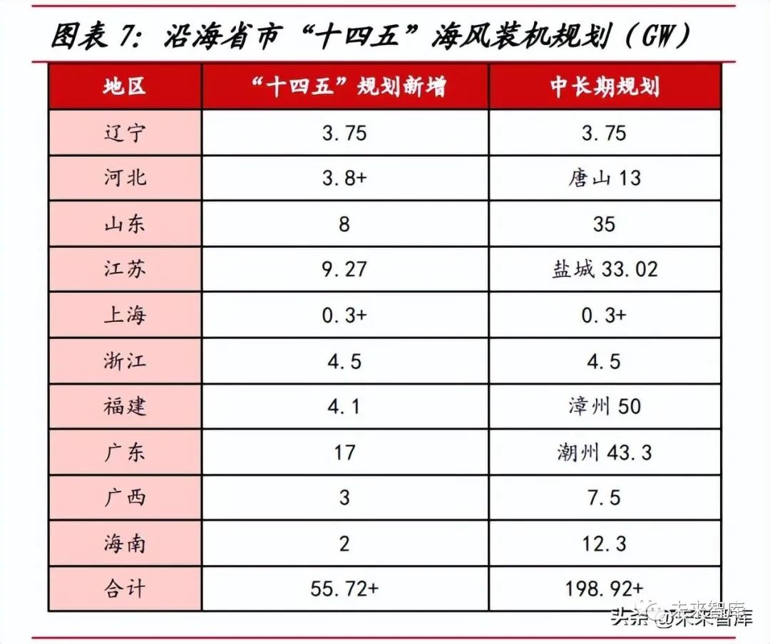 “十四五”規劃充沛,中長期發展可期。截至 2022 年,我國沿海省市已發 布“十四五”海上風電發展規劃,整體規劃新增裝機規模有望突破 55GW,2021- 22 年我國海風新增裝機約 21GW,對應 2023-25 年裝機規模約 34GW。考慮到部 分地區相關海風項目已實現平價上網,海風降本超預期,再結合廣東、山東、浙江 等地區已出臺地補政策支持海風建設,我們預計海風需求以及新增裝機或超過沿海 地區規劃規模,中性假設條件下,2023-25 年我國海風新增裝機規模有望超 40GW, 2023 年在行業充沛的招標量下,新增裝機規模有望達 10GW,同比實現翻倍增長。根據風芒能源統計,我國已出臺的海上風電規劃體量接近 200GW,中長期發展空 間廣闊。
