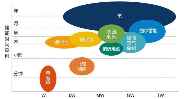 儲能技術按時間尺度可分為超短時(秒級到分鐘級)、短時(小時級到數小時級)儲能和長期(日、周、月、年)儲能。目前,我們已經開發出了多種類型的儲能技術,如電容器、飛輪儲能、電化學儲能(鋰電池、鉛電池、鈉硫電池、液流電池)、壓縮空氣儲能、抽水蓄能、氫儲能等。這些技術各有優缺點,可根據不同的應用場景選擇合適的儲能技術。