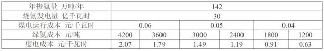 假設實現約30%的摻氨比例,經計算每年需氨量約610萬噸,制氨用電量約680億千瓦時。則制氨所需風電裝機約1100萬千瓦、光伏裝機約2200萬千瓦、制氫+合成氨裝置約1700萬千瓦,建設管道3條,預計設備總投資1820億元。經測算火電摻燒氨帶來的全社會用電成本上升約0.021元/千瓦時。