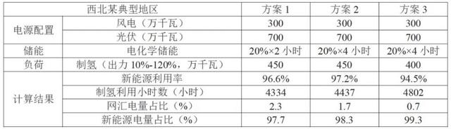 上述計算表明采用制氫作為柔性負荷是一種可行的新能源基地消納解決方案。得益于電解水制氫的柔性負荷對波動性電源的適應性,在三種不同的方案中,棄電率均低于6%,這與傳統的新能源大基地10%~15%左右的棄電率相比,新能源的利用率有了明顯的提高。