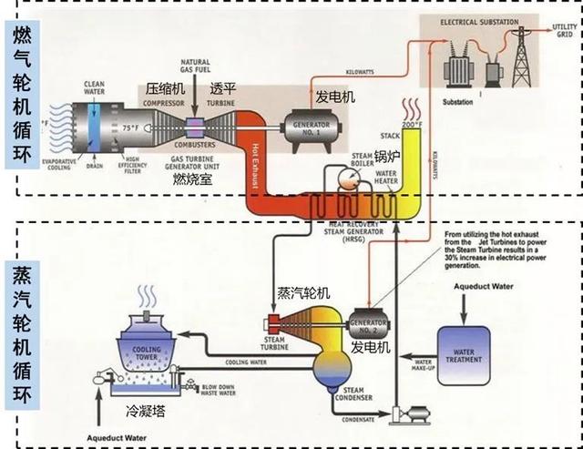 燃氣機“一拖一”聯合循環發電機組發電原理圖