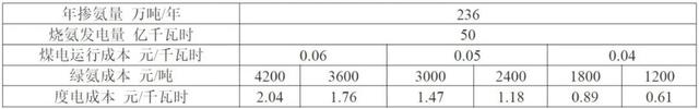 煤電燒氨經濟性評估(年利用小時數3000小時)