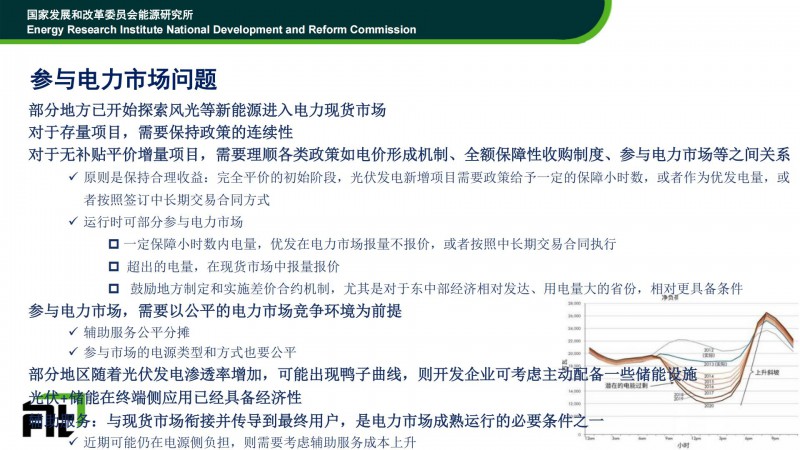 對于風電、光伏參與市場化交易,時老師認為:1)對于存量項目,要保證政策的延續性;2)對于新增項目,要建立公平的電力市場環境為前提,做好輔助服務費用分攤、參與的類型和方式也要公平。