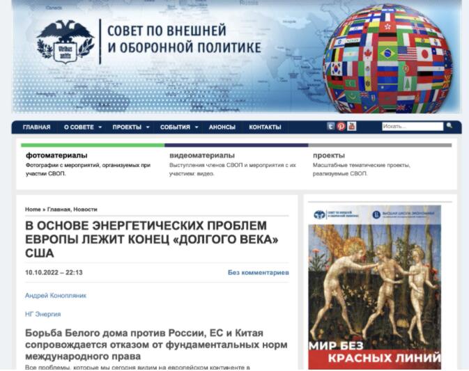 “歐洲的能源問題基于美國‘漫長世紀’終結”,截圖來自“俄羅斯外交與國防政策委員會”網(wǎng)站