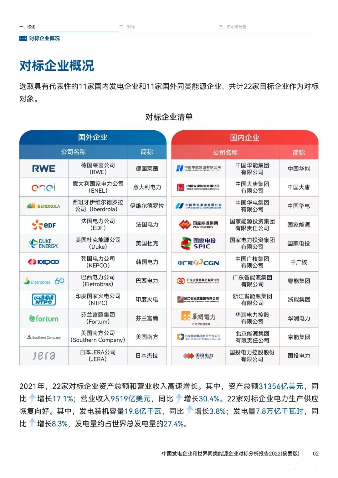 日前中國電力企業聯合會2022 年年會在海口舉行,中電聯電力發展研究院院長張天光在會上正式發布《中國發電企業和世界同類能源企業對標分析報告2022》,選擇了國內11家與國外11家代表性同類企業進行對比分析!國家能源集團在裝機量、發電量等指標上全球領先,但國內發電企業的海外營收較全球同行偏低。