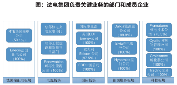 戰略決定組織變革,組織支撐戰略落地。目前法電負責關鍵業務的成員企業和部門可以歸納為五大板塊,如下圖所示。