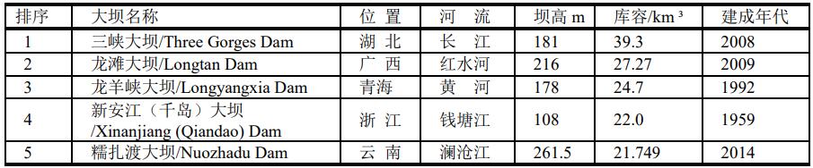 ▲ 中國最大的壩體是三峽大壩(Three Gorges Dam)2008年建成,構筑物高達181米,大壩體積為27.4百萬立方米,裝機容量22500MW。世界排名第21位。
