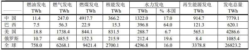 ▲ 從表中看出,中國水力發電占全球水力發電總量的1322.0/4296.8=30.8%,居世界第一,但占中國發電總量的比例(17%)僅比全球平均水平(16%)高出一點點。