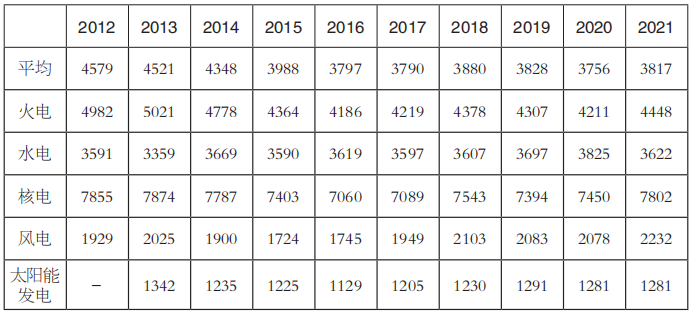 表4 2012~2021年發電設備利用小時數(單位:小時)
