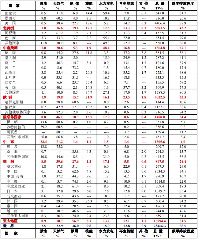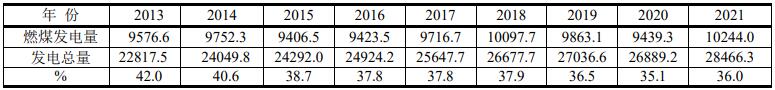 從表中看出,燃煤發電量逐年仍然在增加,但是燃煤發電量占全球發電總量的%在逐年降低。其原因是核能發電和再生能源發電在逐年增加而擠兌了燃煤發電量所占的%。