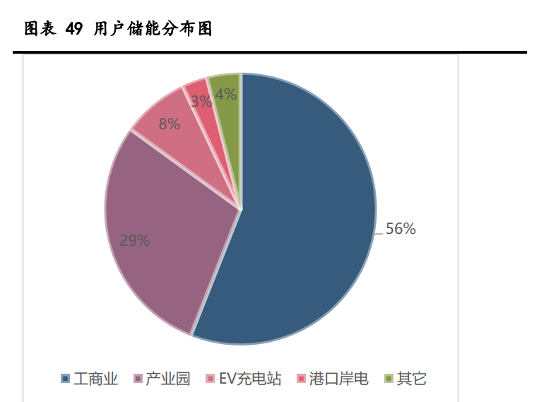 國內(nèi)用戶側儲能以工商業(yè)和產(chǎn)業(yè)園為主。2021 年國內(nèi)新型儲能中用戶側儲能占比 達到 24%,重要性愈發(fā)凸顯,細分應用場景來看,國內(nèi)工商業(yè)和產(chǎn)業(yè)園占據(jù)了絕對主力, 合計占比超過 80%,是用戶側應用的主流用途。