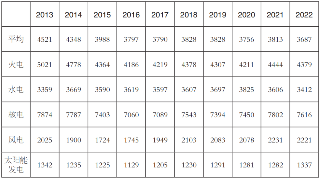 表5 2013—2022年發電設備利用小時數(單位:小時)