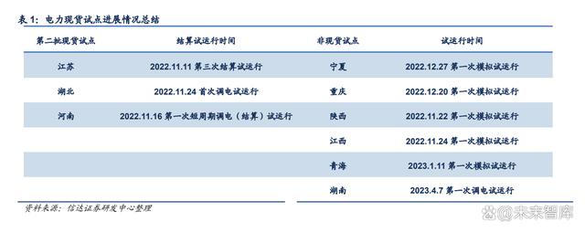 現(xiàn)貨市場分省試運行提速,現(xiàn)貨時代或?qū)砼R。2022 年 11 月,國家能源局公開發(fā)布《電 力現(xiàn)貨市場基本規(guī)則(征求意見稿)》《電力現(xiàn)貨市場監(jiān)管辦法(征求意見稿)》并征求 社會意見,標(biāo)志著全國范圍內(nèi)的省級電力現(xiàn)貨市場發(fā)展將出現(xiàn)提速。第一批 8個試點地區(qū) (南方(以廣東起步)、蒙西、浙江、山西、山東、福建、四川、甘肅)已于 2022 年 6 月 底啟動長周期結(jié)算試運行,第二批 6個試點地區(qū)(上海、江蘇、安徽、遼寧、河南、湖北) 已于 2022 年 7 月底前啟動模擬試運行。四季度以來,第二批現(xiàn)貨試點中湖北、河南已經(jīng)開 始啟動調(diào)電試運行,江蘇也于 11 月開展第三次結(jié)算試運行。此外,非現(xiàn)貨試點省份對于現(xiàn) 貨市場的建設(shè)推進(jìn)積極性也較高:寧夏、重慶、陜西、江西在 2022 年四季度均開展首次模 擬試運行;青海、湖南也分別于 2023 年 1 月和 4 月開展模擬試運行和調(diào)電試運行。2023 年有望出現(xiàn)全國范圍內(nèi)的現(xiàn)貨市場熱潮,“現(xiàn)貨時代”或?qū)砼R。