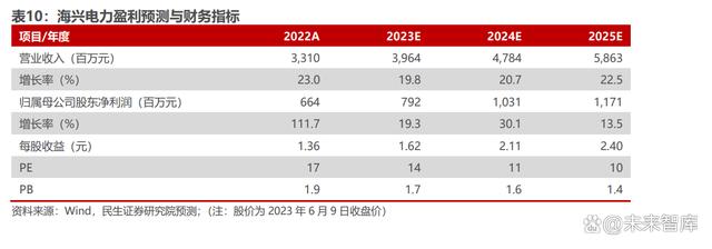 海興電力業務拆分: 1) 智能配用電:根據 markets and markets 報告,2021 年全球智能電網規模約 為 431 億美元,預計 2026 年將達到 1034 億美元,CAGR 為 19%。其中海 外拉美及非洲大多數國家仍處于智能電網改造大規模投資建設期,對電力基礎 設施建設需求旺盛,對應智能配用電解決方案和產品需求顯著增加。國內方面, “十四五”期間,國網和南網的計劃投資近 3 萬億元,年均 5800 億元。我們 預計公司智能用電產品 23-25 年收入增速分別為 20%/21%/23%,智能配電 產品 23-25 年收入增速分別為 15%/15%/15%。 2) 新能源:全球光伏市場高速發展,2022 年全球 GW 級光伏市場達到 26 個, 新增 5 個 GW 級市場,其中印度、越南、沙特、巴西等市場擁有大量在建項 目,這些國家地區在未來三年內將迎來集中并網的高峰。公司目前已構建新能 源全球渠道,形成產品-營銷-交付三位一體的管控體系。我們預計公司新能源 業務 23-25 年收入增速分別為 40%/40%/40%。