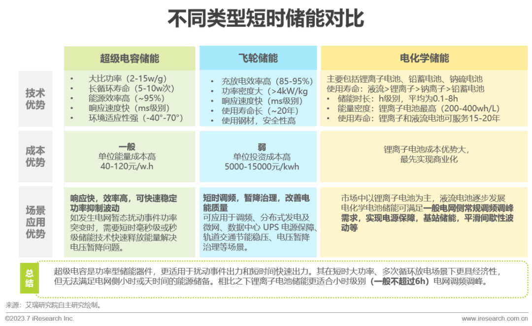 鋰電池儲能不同應用需求優勢突出,超級電容及其他電化學儲能其次