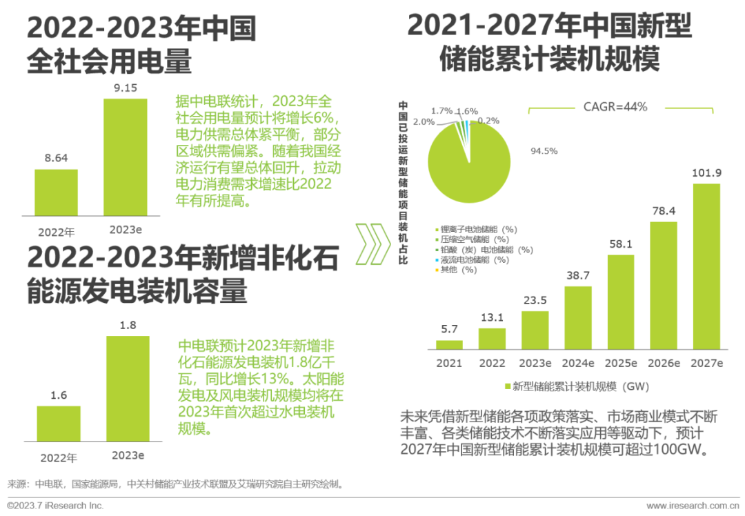 中國電力市場需求進一步增大和非化石能源發電裝機量的容量和比例不斷增加給儲能的市場擴容帶來更多發展空間。