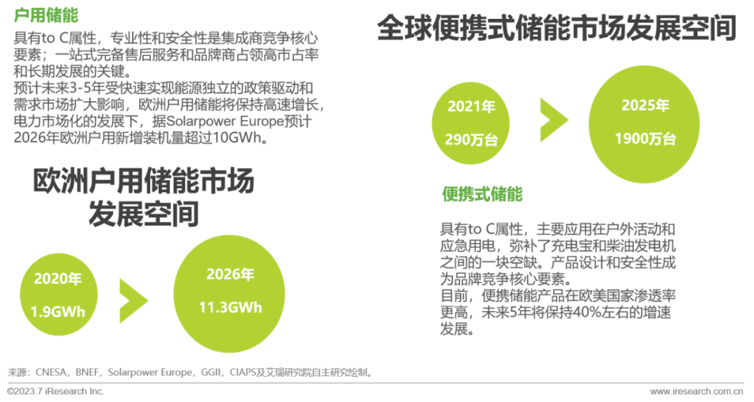 儲能海外市場高速發展主要集中在戶儲和便攜式儲能兩大領域,歐洲和美國是全球戶用儲能裝機主力,各占據約1/4的市場。高速發展的主要驅動因素有以下幾方面: