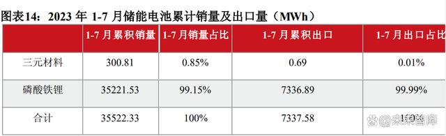 據(jù)中國汽車動力電池產(chǎn)業(yè)創(chuàng)新聯(lián)盟統(tǒng)計(jì)數(shù)據(jù),2023年1-7月,我國儲能電池累計(jì)銷量達(dá)35.5GWh。其中磷酸鐵鋰電池累計(jì)銷量35.2GWh,我國儲能電池累計(jì)出口達(dá)7.3GWh,其中磷酸鐵鋰電池累計(jì)出口7.3GWh。