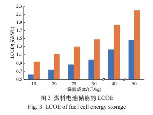 目前,成熟的儲能技術的儲能時長均未超過12 h,而利用氫基能源進行儲能可完全實現跨日、月、季節性長時儲能調節。下文對氫基能源長時儲能的經濟性進行分析,以平準化度電成本(LCOE) 作為具體評價指標。